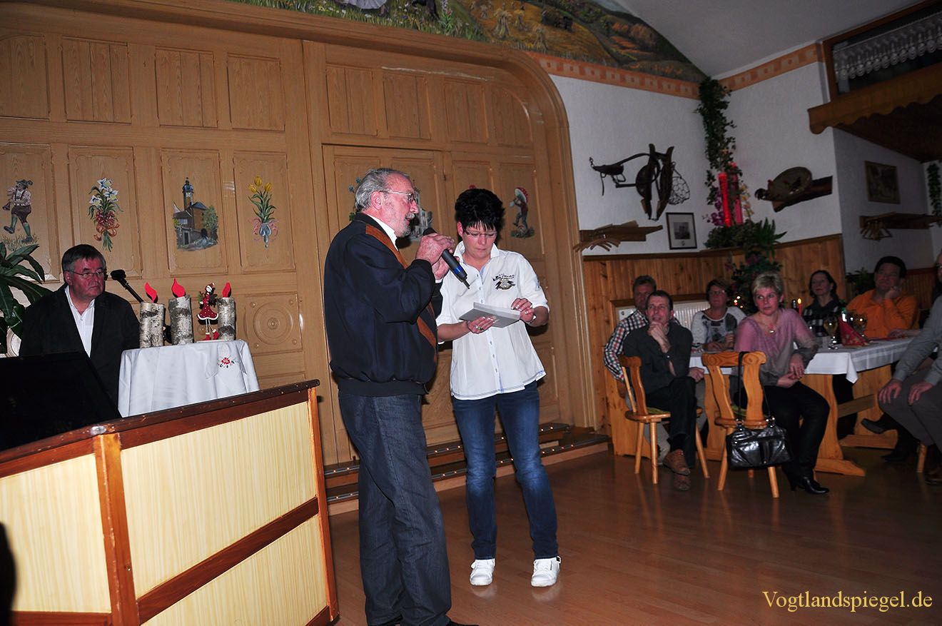Gerhard Jalowski bittet Mandy Clauß, ihm beim Austeilen der Karten zu helfen.