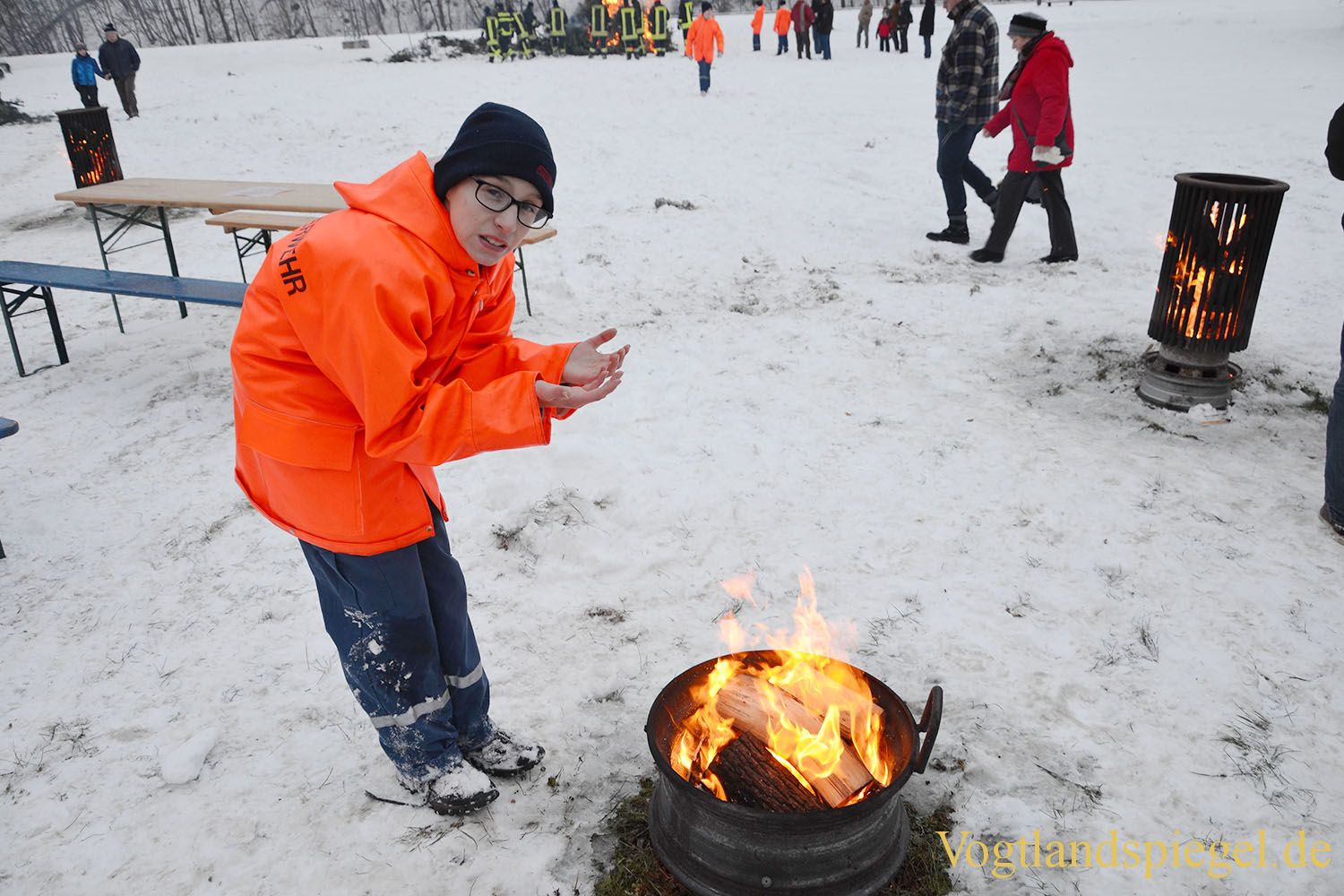 Am Feuerkorb kann man sich schön die Hände wärmen.