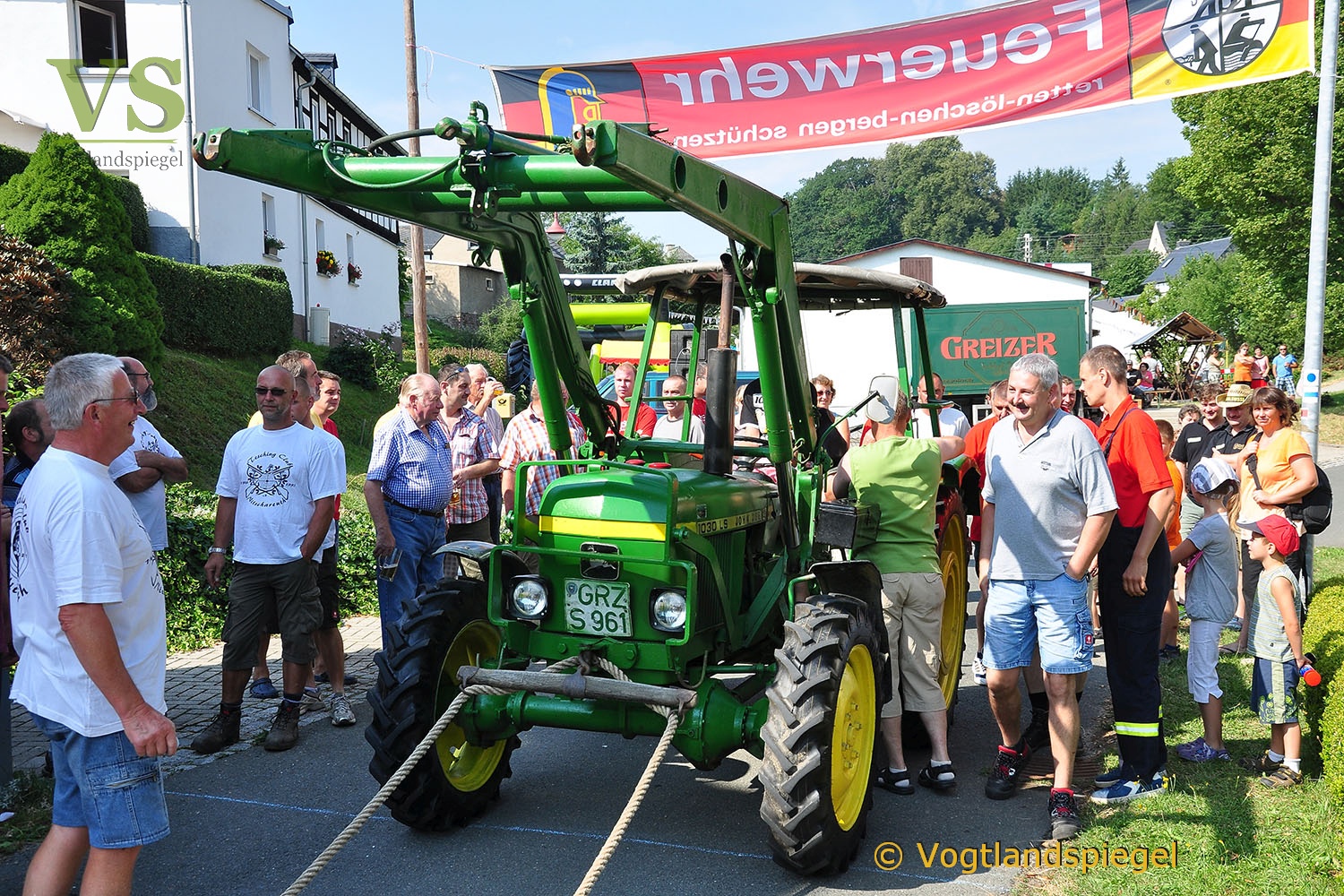 Die Männer-WG Langenwetzendorf belegte beim traditionellen Traktorenziehen in Nitschareuth den 1. Platz. Hier startet der Wettkampf