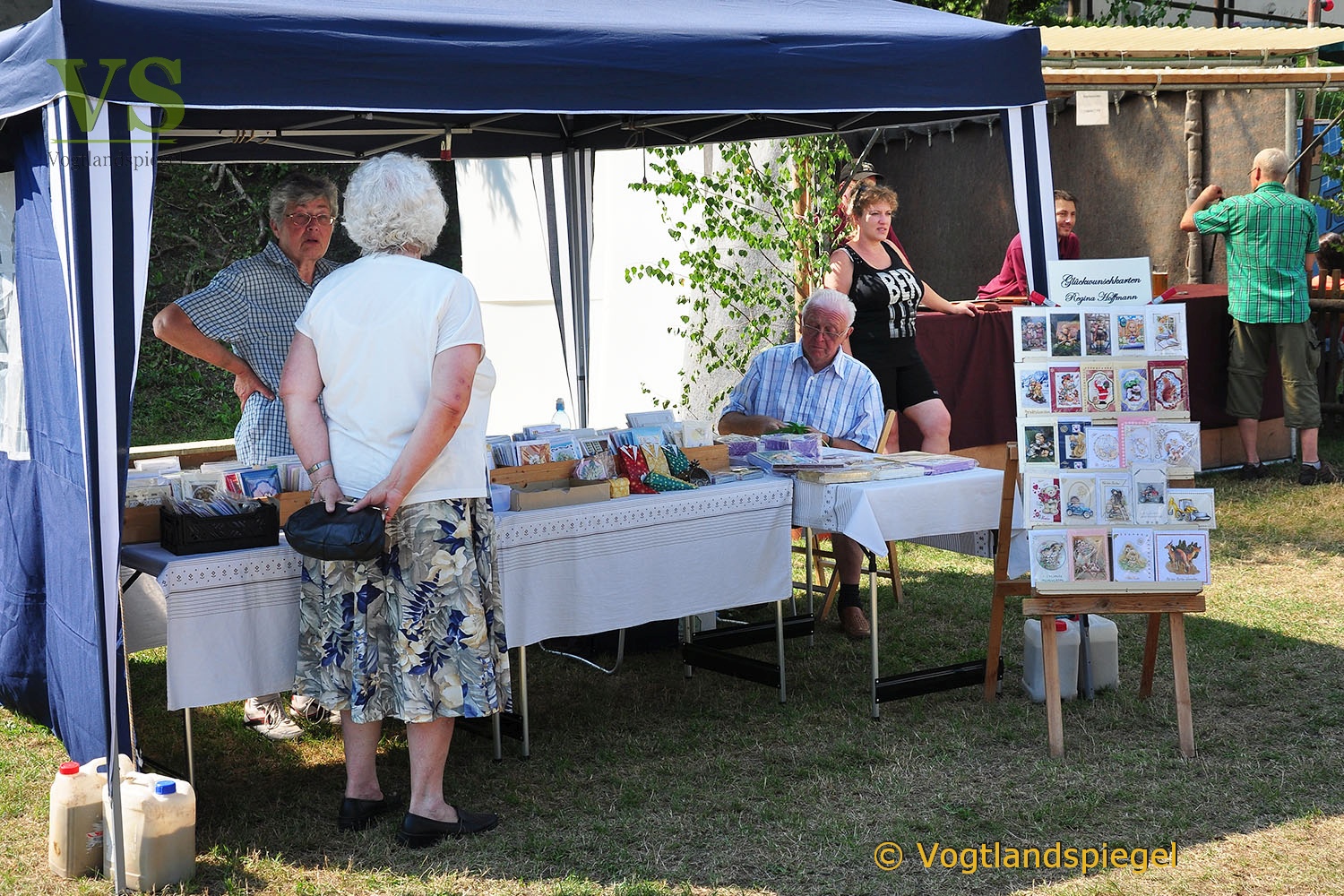 Die Männer-WG Langenwetzendorf belegte beim traditionellen Traktorenziehen in Nitschareuth den 1. Platz – das Ehepaar Hoffmann aus Zickra bot ihre schönen Artikel zum Kauf an