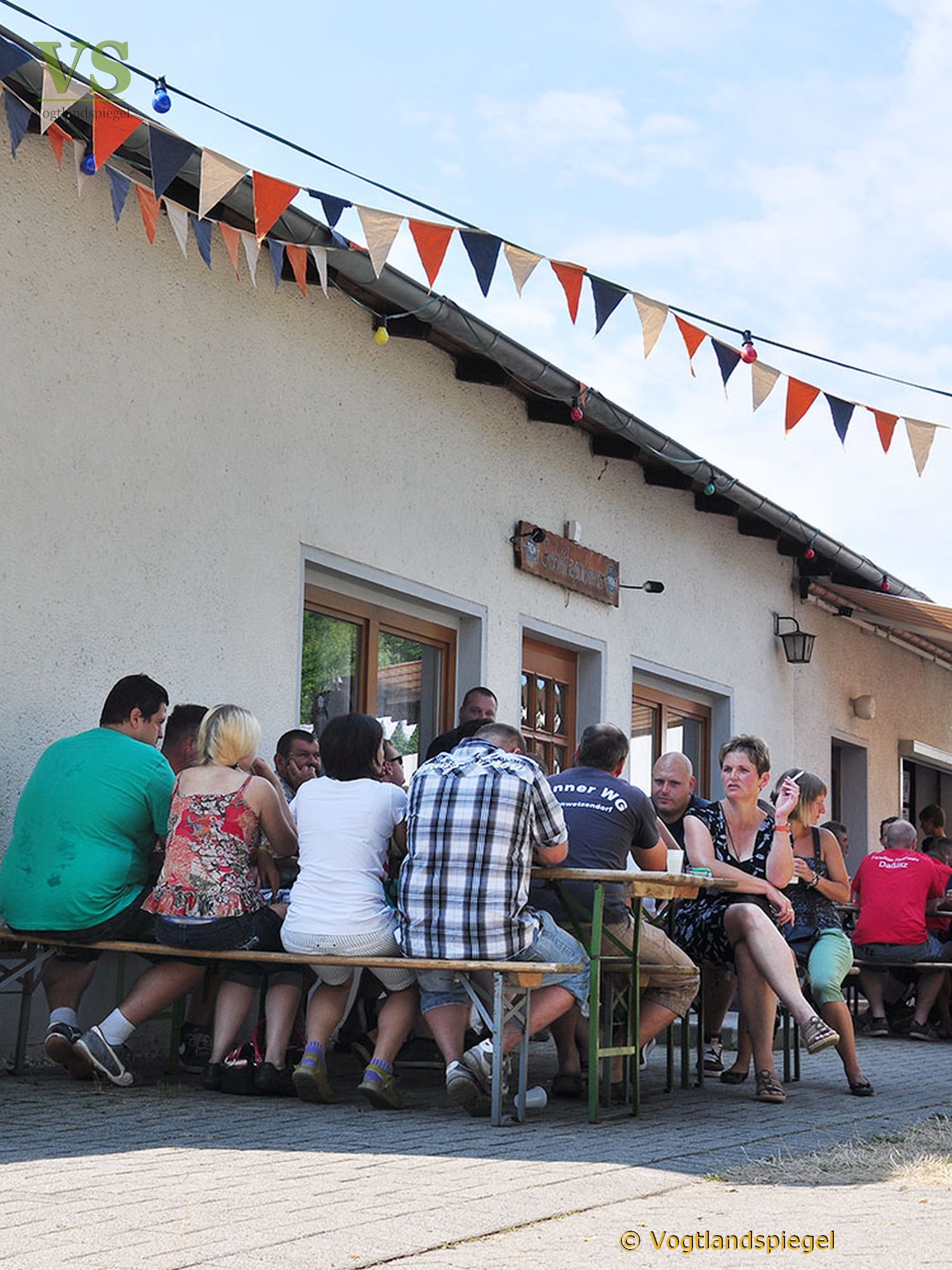 Die Männer-WG Langenwetzendorf belegte beim traditionellen Traktorenziehen in Nitschareuth den 1. Platz – hier beim gemütlichen Frühschoppen