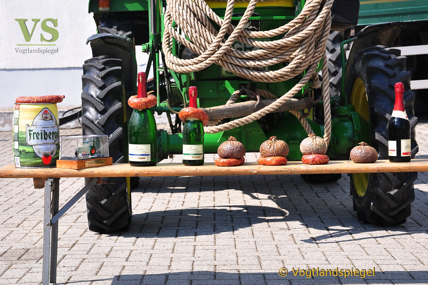 Die Männer-WG Langenwetzendorf belegte beim traditionellen Traktorenziehen in Nitschareuth den 1. Platz – die Präsente warten schon auf die Gewinner