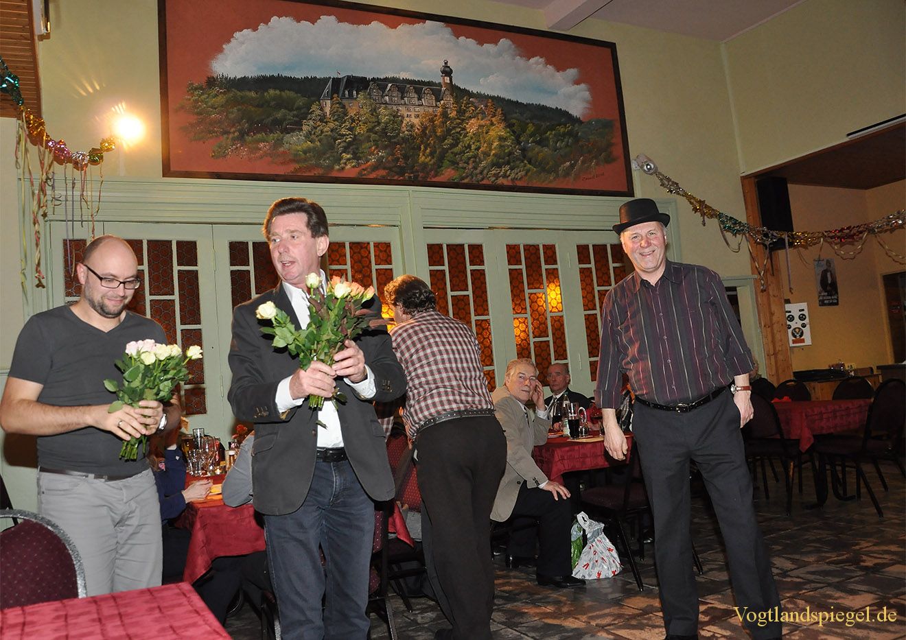 Eine schöne Idee haben Chorleiter Markus Dietzsch (l.) und Ulrich Zschegner: zum Valentinstag bekommen alle Frauen eine Rose überreicht.