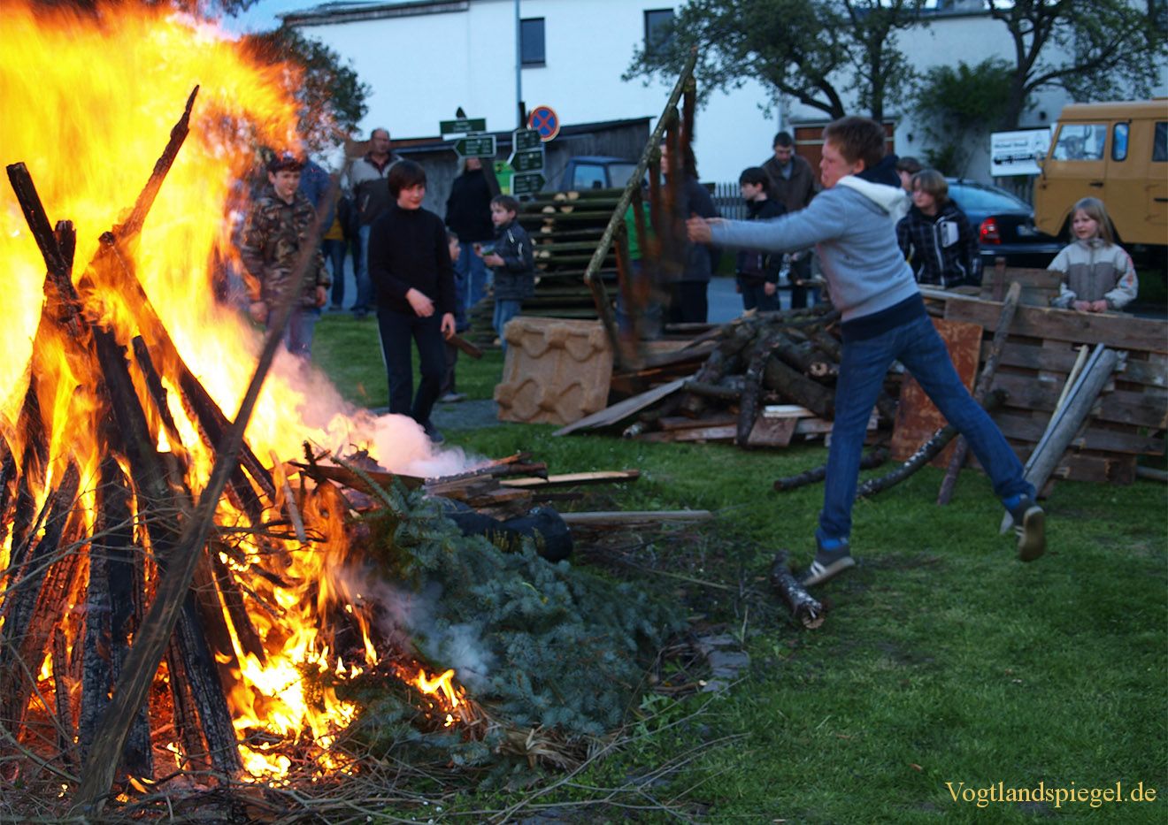 Den Jüngsten macht es Riesenspaß, Holz ins Feuer zu werfen.