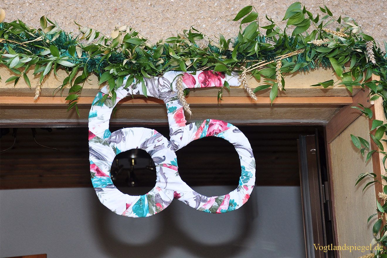 Über der Haustüre prangt die Zahl 65 für 65 Ehejahre.