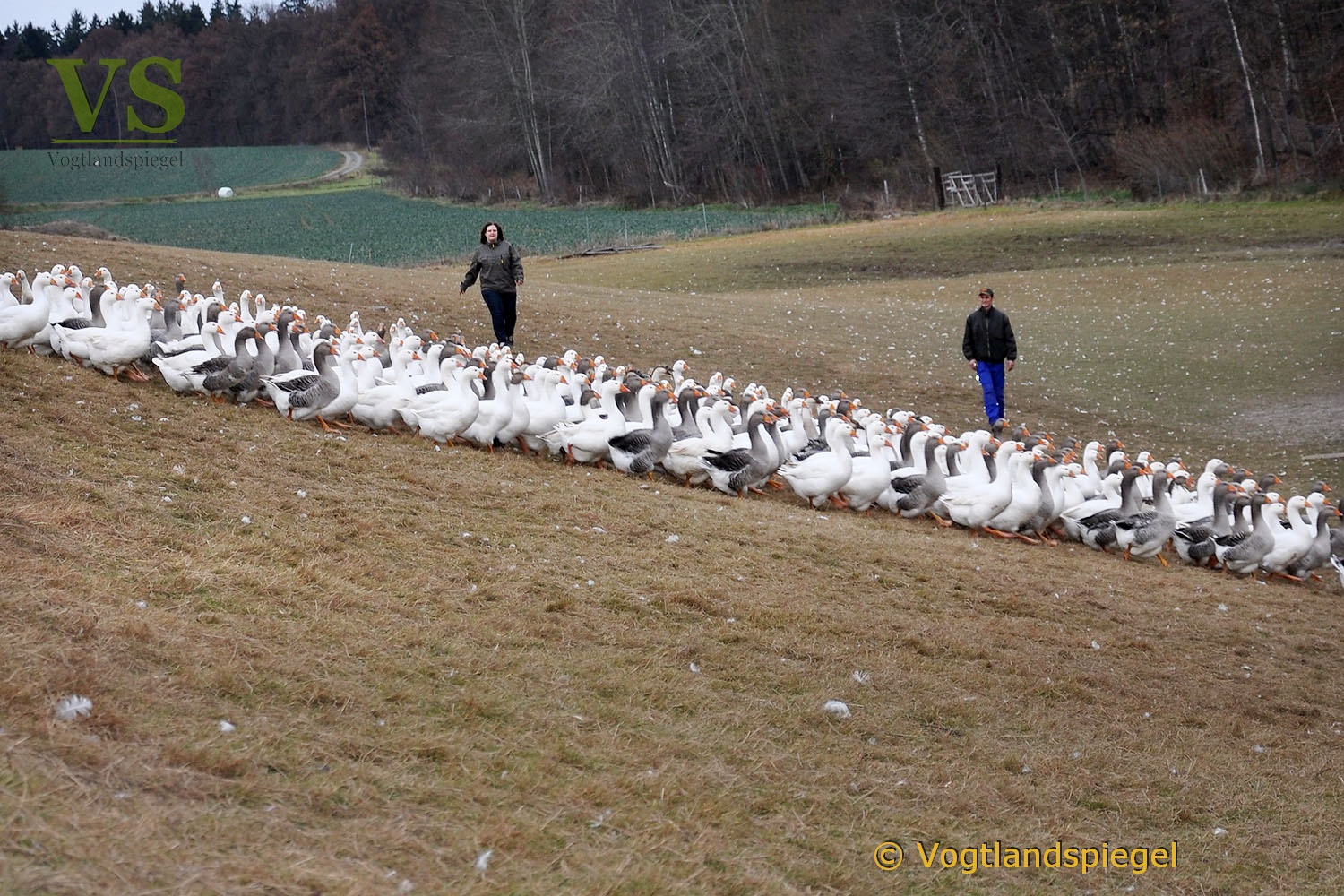 Die Mohlsdorfer Gänse haben eine eigene Wiese mit Teich. Ines und Christian Hohmuth haben 520 Stück.