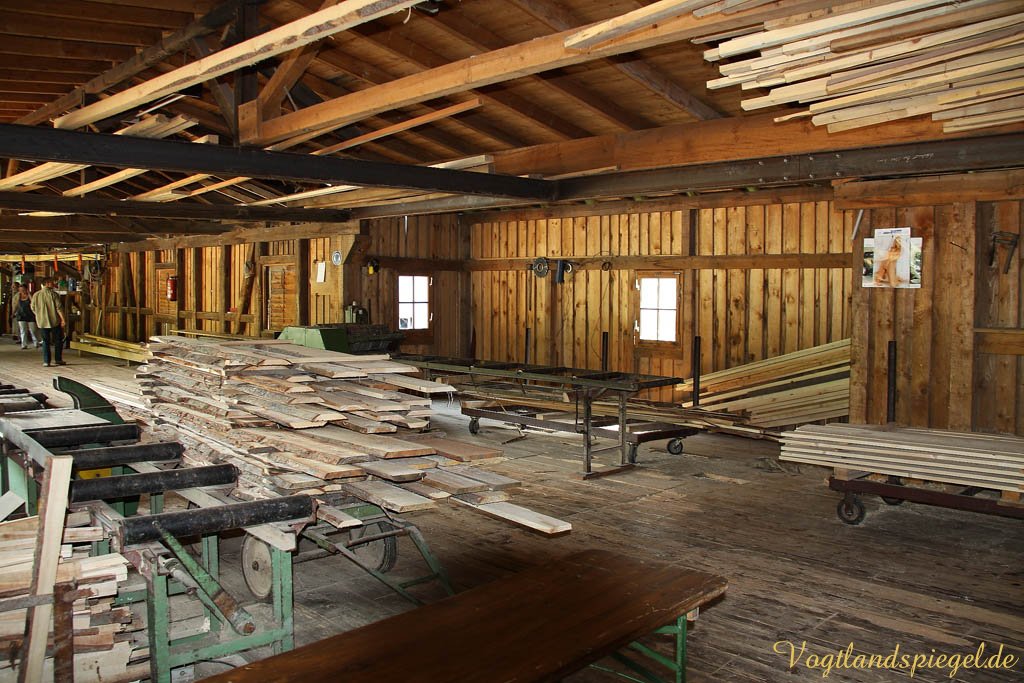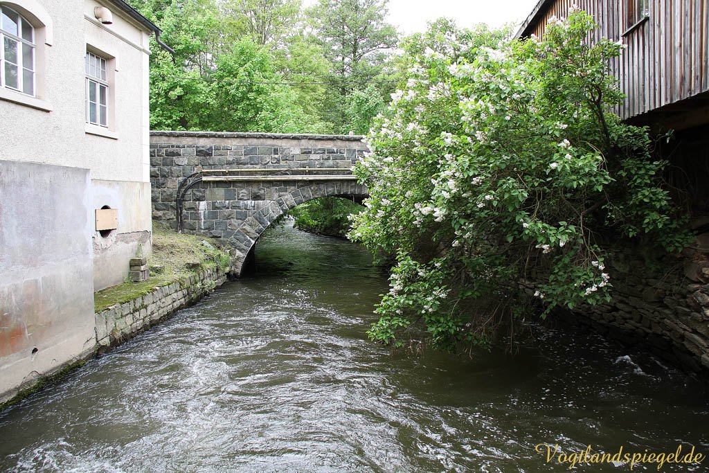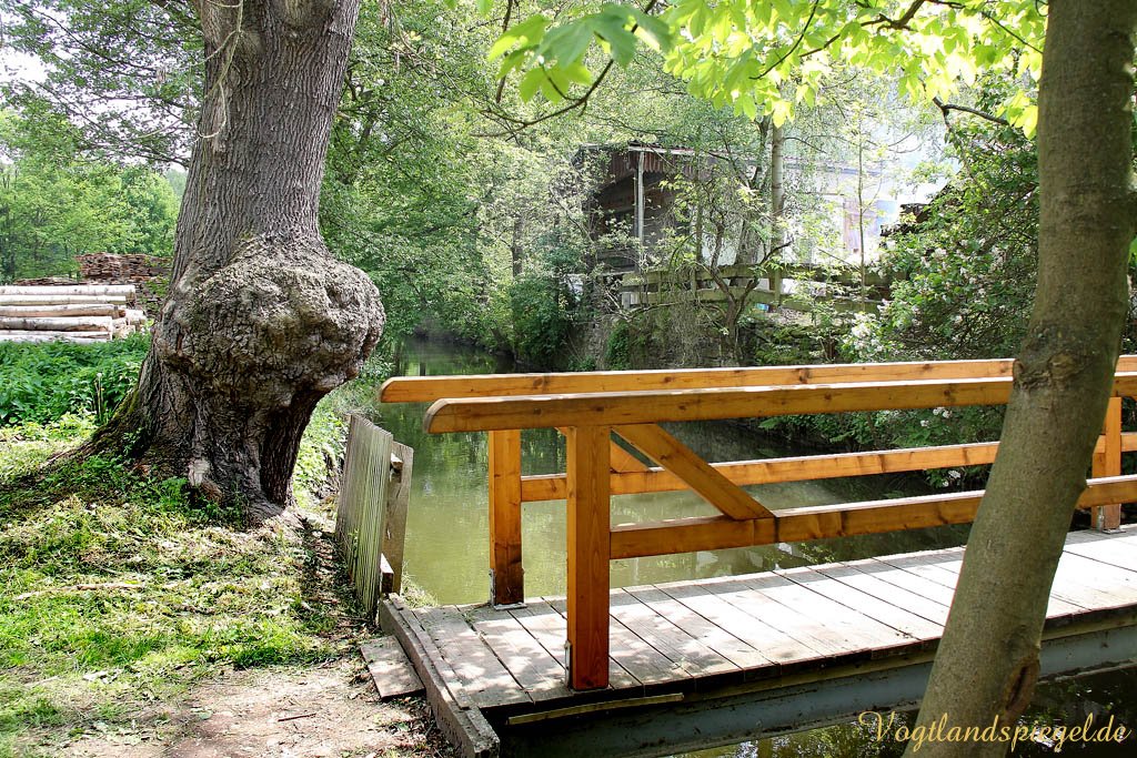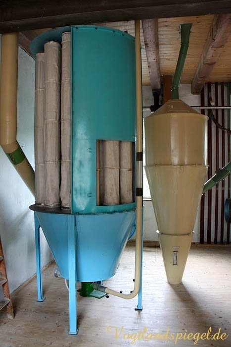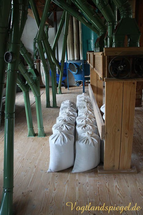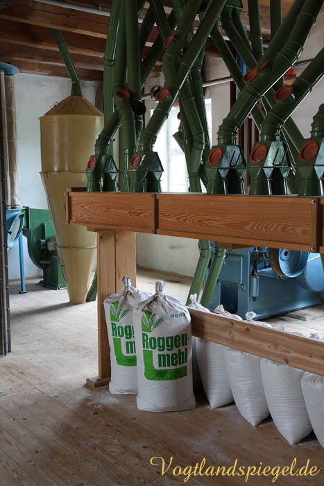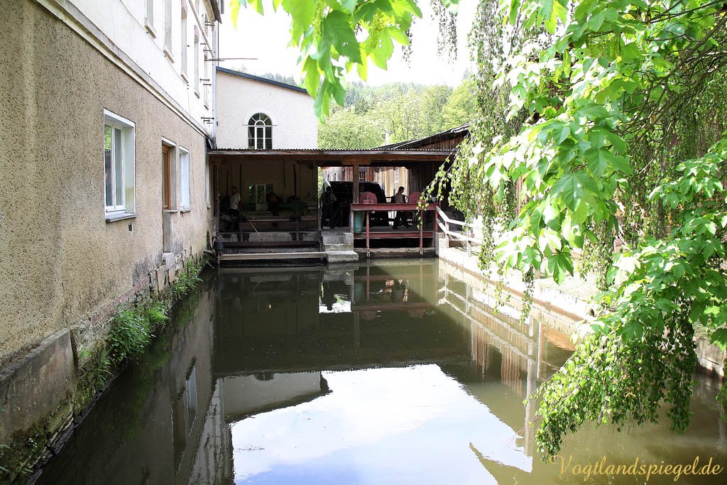 GREIZ-NEUMÜHLE. Gebaut wurde die Wassermühle im Jahr 1347. Das alte Wasserrad leistete etwa 12 PS. 1979 wurde eine Wasserturbine mit einer Leistung von 100 PS in Betrieb genommen. Zum Mühlentag 1997 wurde das neue Wasserrad mit 200 PS Leistung in Betrieb genommen. Die Mühle dient als Getreidemühle mit angeschlossenem Sägewerk.