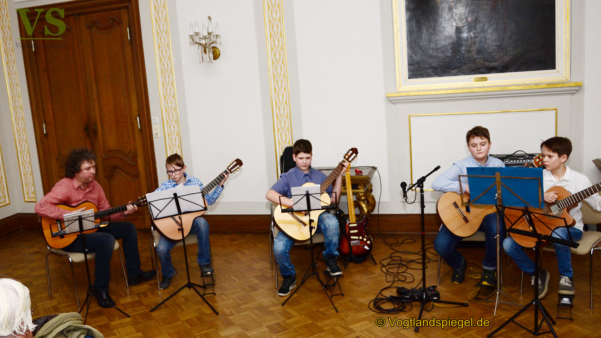 Die Gitarrengruppe „Vielsaitig“ bei ihrem Vortrag.