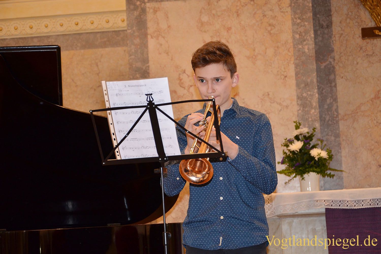 Luca Haußdorf spielt auf der Trompete.