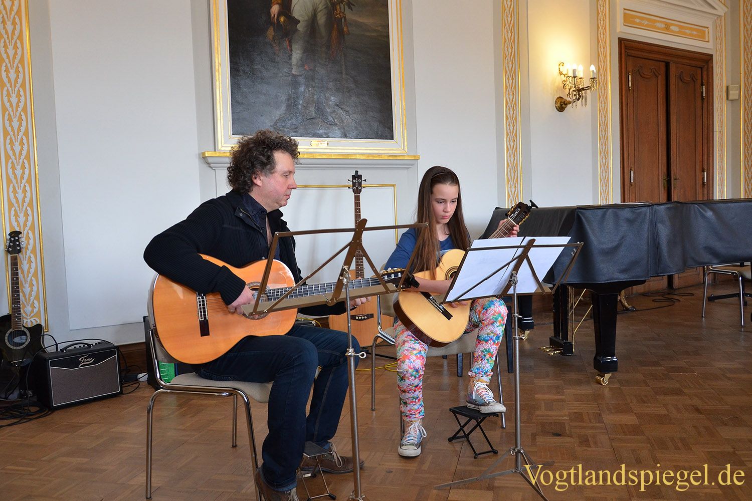 Nina Fiedler spielt zwei Volkslieder auf der Gitarre.