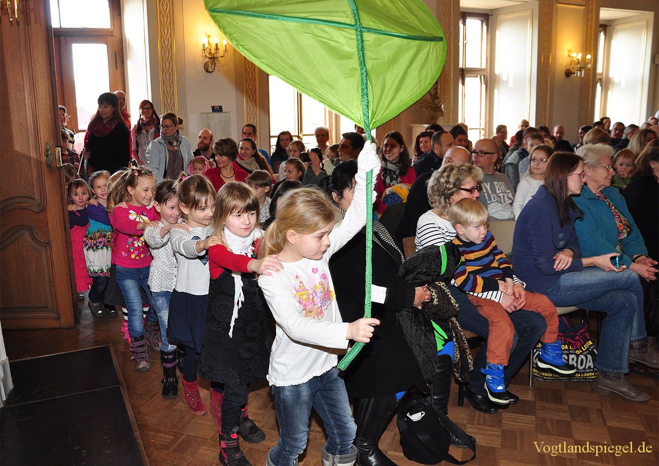 Die Kinder der musikalischen Früherziehung ziehen in den Weißen Saal ein.