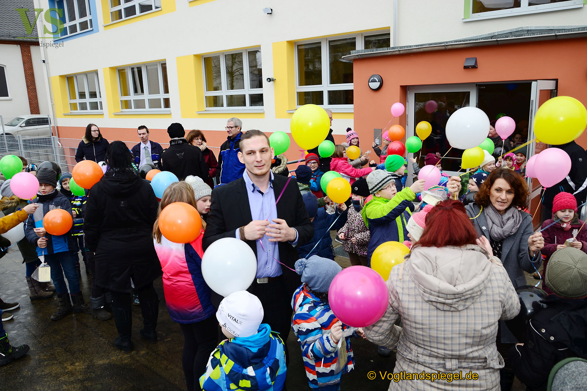 Im Schulhof versammelten sich alle Schüler, um Luftballons steigen zu lassen.