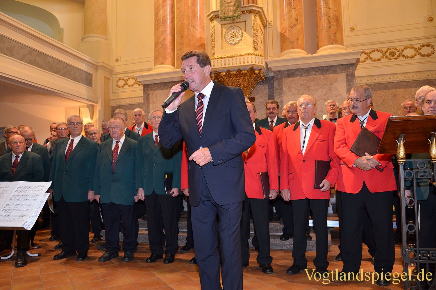 Ulrich Zschegner begrüßt die Gäste in der Stadtkirche St. Marien.