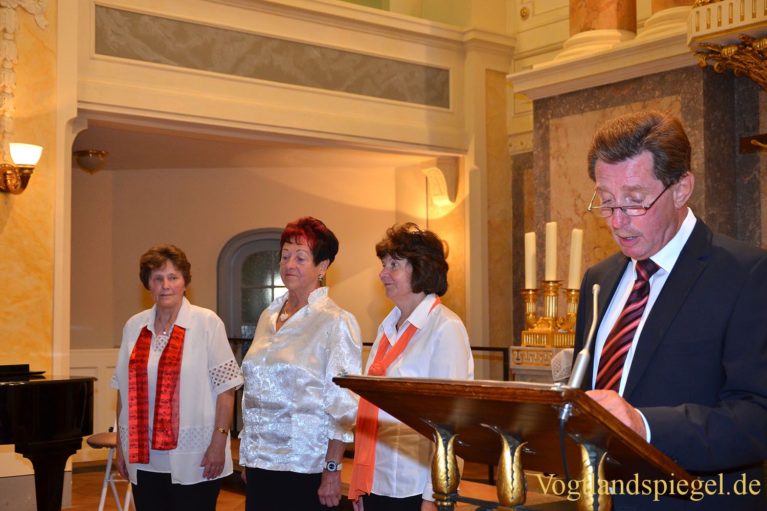 v.l. Irene Burkhardt, Brigitte Weber und Marlies Jugel werden von Ulrich Zschegner ausgezeichnet.