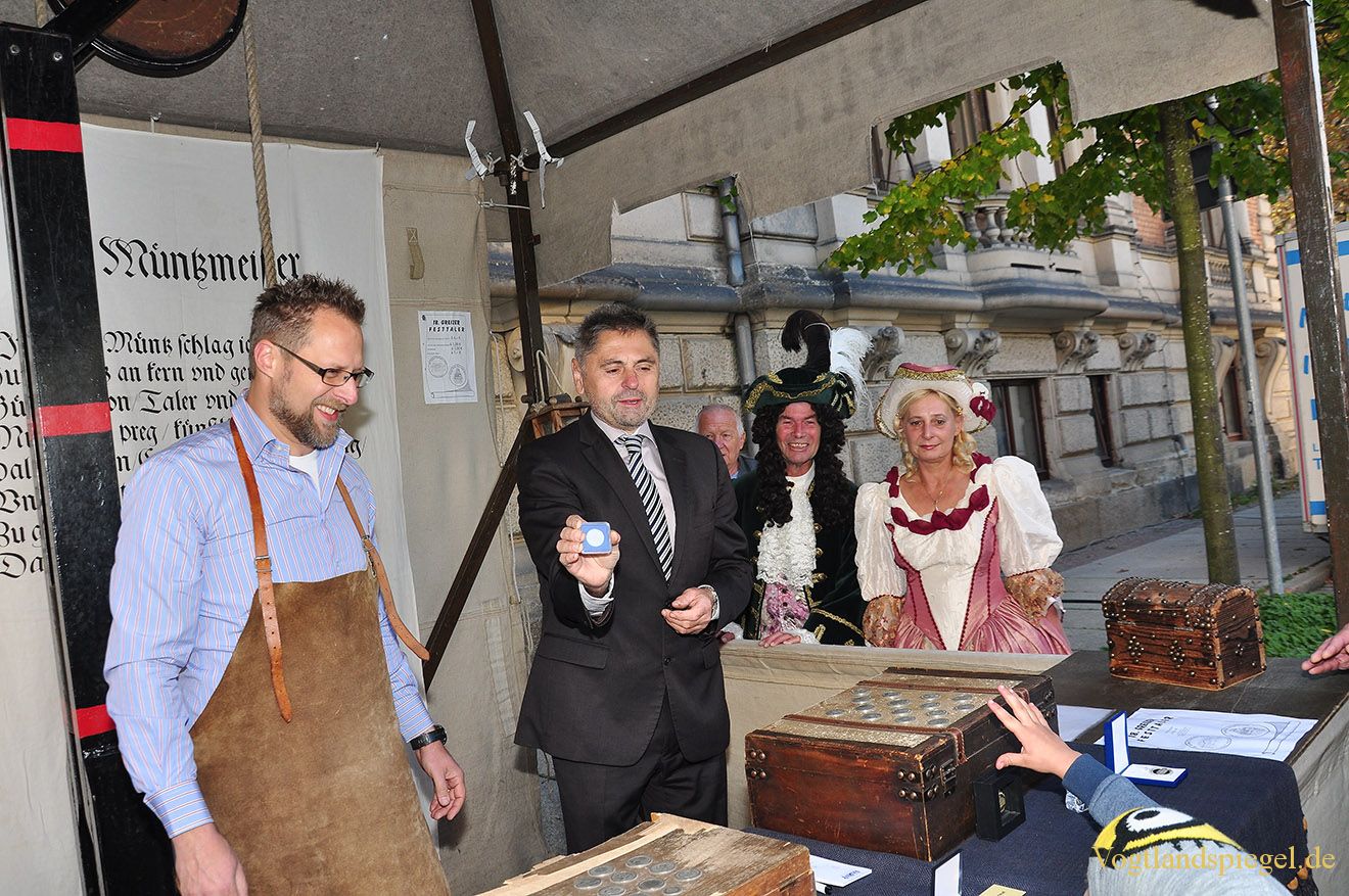 Bürgermeister Gerd Grüner (M.) präsentiert den Festtaler.