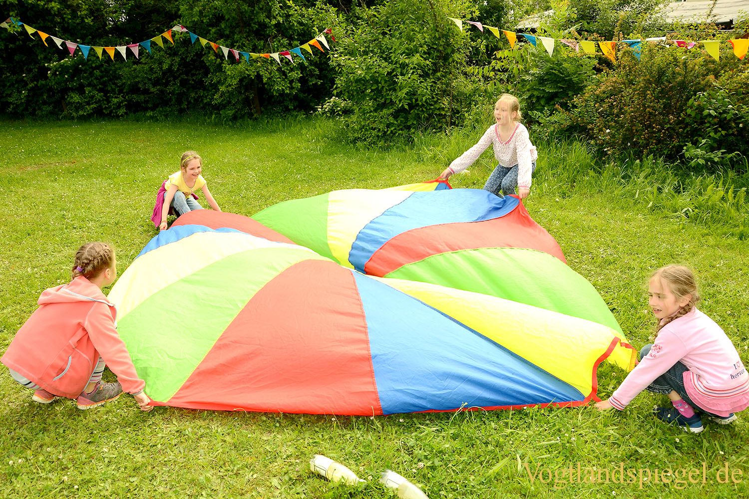 Das bunte Schwungtuch begeistert die Mädchen.