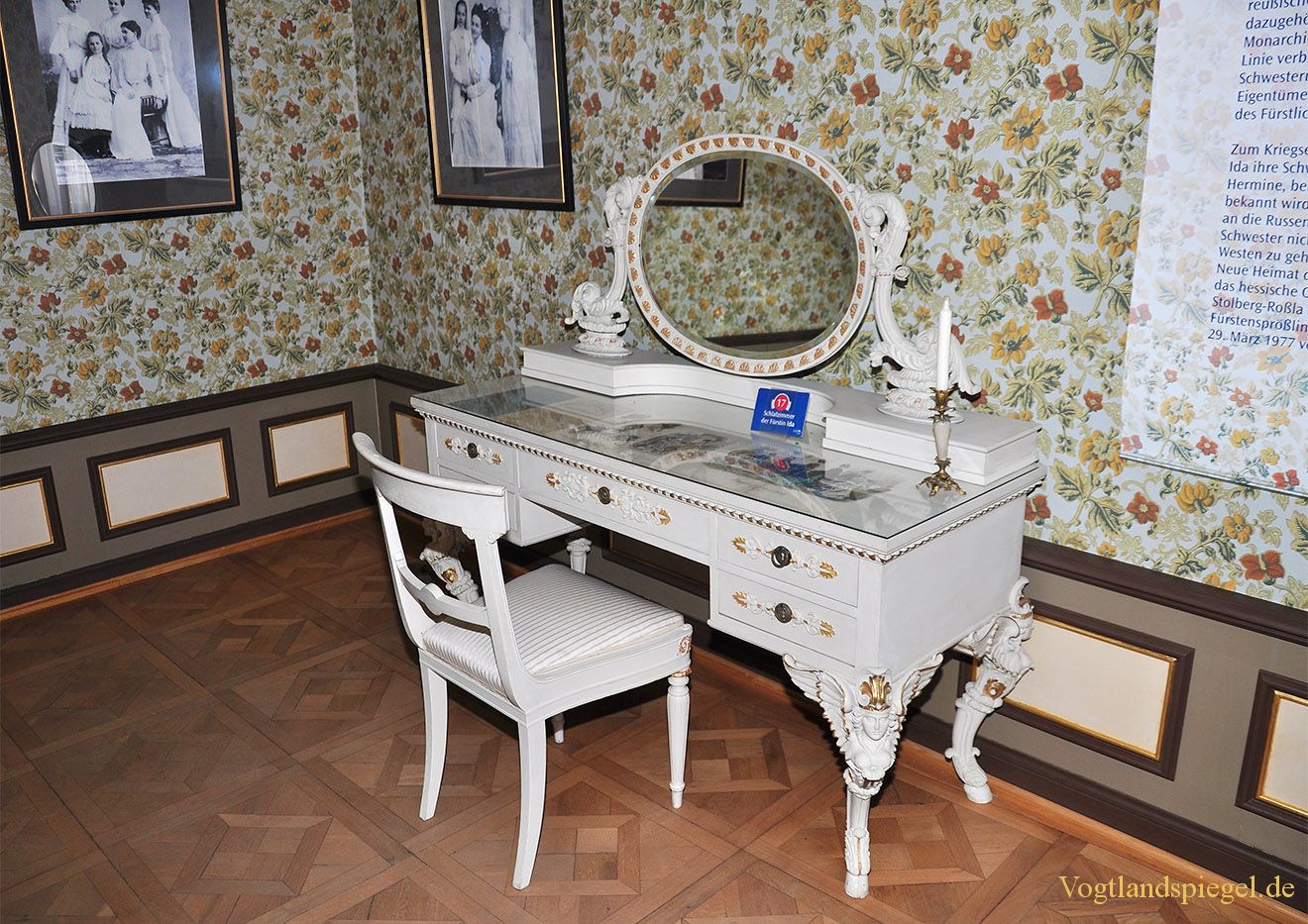 Edle Kommode mit Spiegel im Schlafzimmer der Fürstin Ida.