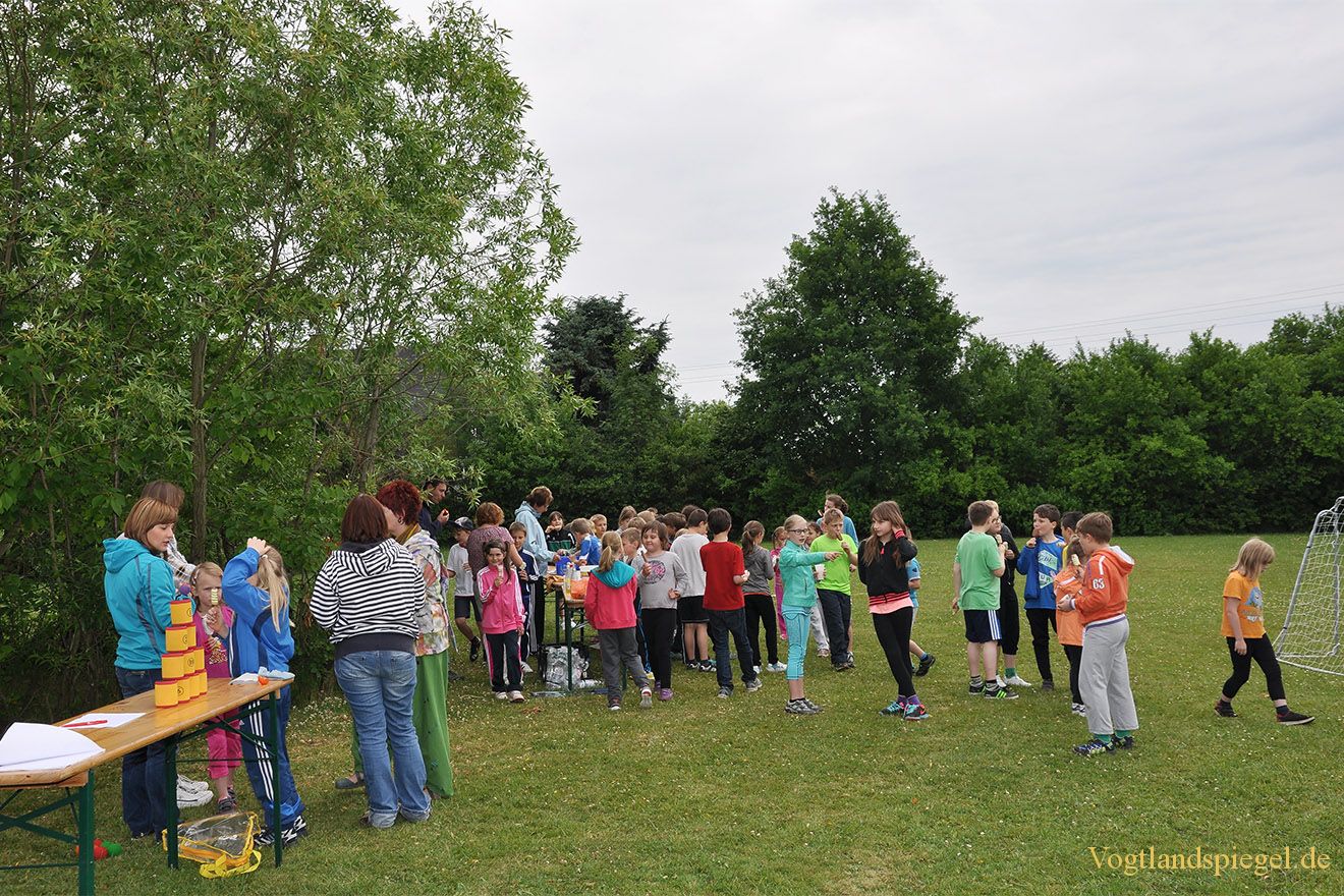 Kurze Pause beim Sportfest der Bertolt-Brecht-Grundschule Obergrochlitz.