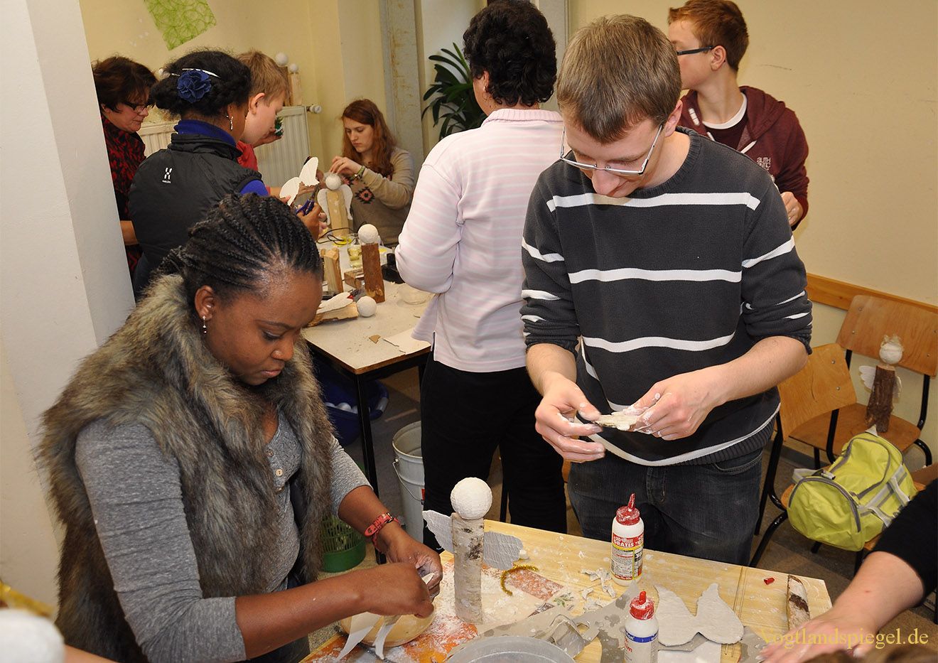 Zeulenrodas Kantor Stefan Raddatz (r.) macht das Basteln sichtlich Spaß.