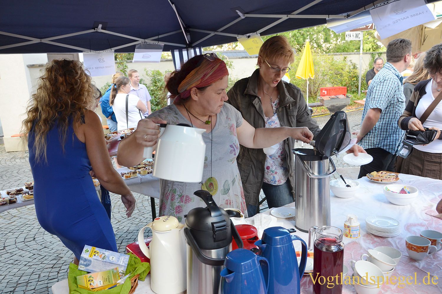 Anja-Maria Vetter beim Kaffeeausschank auf dem Kirchplatz.