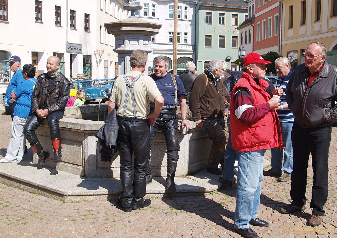 Auf dem Greizer Markt werden die Teilnehmer der Oldtimerausfahrt von Bürgermeister, Gerd Grüner herzlich empfangen.