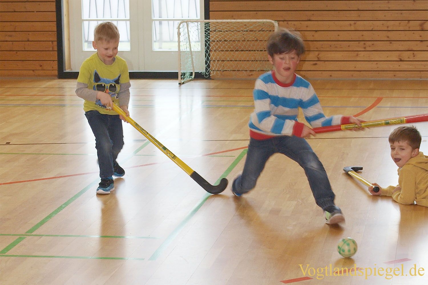Hockeyspielen machte den Jungen sichtlich Spaß.