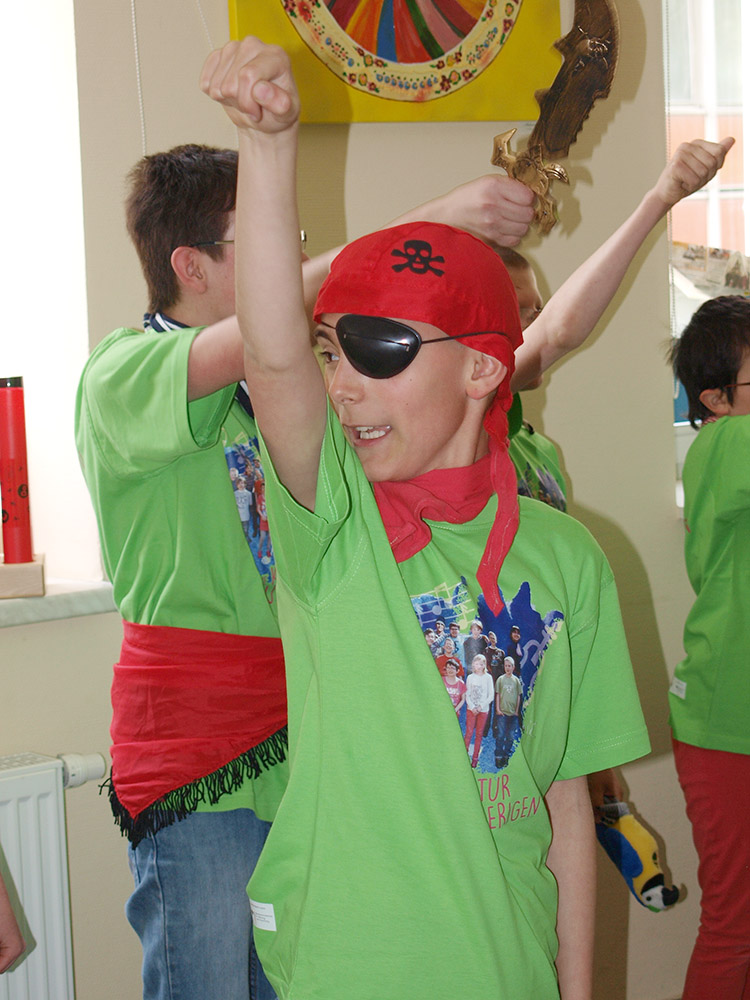 Doch diese Ziele umzusetzen bedurfte eines großen Engagements aller Beteiligten, hatte man sich doch den Arbeitstitel „Die Kultur (Neu)Gierigen“ für dieses Projekt ausgewählt, wobei ein Musikprojekt, eine dreitägige Kursfahrt nach Plauen mit dem Handwerksprojekt zu den vier Jahreszeiten in dem Gesamtprojekt integriert wurden. Mit dem Verein „Weberhäuser Plauen, Unikat e.V“, der Jugendherberge „Alte Wache“ Plauen und Undine Hohmuth von der Vogtlandhalle Greiz hatte die Tagesgruppe Greiz kompetente Partner für die Umsetzung des Projektes gefunden, die mit ihren Möglichkeiten und ihrem Know how die Jungen und Mädchen der Tagesgruppe Greiz entsprechend unterstützten. Da wurde eine Frühlingslandschaft gewebt, ein Wandbehang gefilzt, da wurde ein Textilbild gestaltet und eine Wintercollage gebastelt. Ganz zu schweigen davon, dass die Kinder das Ziehen von Kerzen sowie das Töpfern von Vogeltränken hautnah erlebten und damit handwerkliche Fähigkeiten erwarben. Von den Ergebnissen konnte man sich in einer kleinen liebevollen Ausstellung überzeugen. Das Ganze hatte zwar nur bedingt einen Bezug zu „Wasser und Musik“, doch auch die musischen und musikalischen Fertigkeiten der Kinder wurden nicht außer Acht gelassen. Verweist doch die Musikliteratur auf viele Verbindungen von Musik und hörbarer Landschaftsmalerei, so die „Moldau“ von Bedrich Smetana, die „Vier Jahreszeiten“ von Antonio Vivaldi und vieles mehr, was die Kinder in ihrer ganz eigenen Interpretation am Dienstag zur Premiere ihres Programm im Bürgerhaus Greiz-Dölau vortrugen. Natürlich hatten sich die Kinder in Vorbereitung auf diese Projektpremiere den Greizer Musentempel „Vogtlandhalle“ unter sachkundiger Führung von Undine Hohmuth angesehen und sich informieren lassen, welche gestalterischen sowie choreographischen Gesichtspunkte in ihr Programm einfließen können und müssen. Hatten sich die Kinder doch entschieden, dieses Projekt als Piratenmusical auf die Bühne zu stellen, wobei ihnen Regine Horlbeck, eine freie Musikerin mit musikpädagogischem Profil, sehr hilfreich zur Seite stand und sie anleitete. Es war schon erstaunlich, mit welchem Ideenreichtum, aber auch mit welchem Charme, manchem Esprit und auch einer gehörigen Portion Coolness die Jungen und Mädchen ihr Lampenfieber meisterten, das Publikum zum Schmunzeln, ja auch zum Lachen brachten und mit welcher Spielfreude sie das Programm ihres Musical abspulten. Bedenkt man die Besonderheiten der Tagesgruppe als sozialpädagogische Tagesgruppe für Kinder mit besonderem Förderungsbedarf, so kann man mit Fug und Recht dieses in Greiz-Dölau realisierte Projekt als „mit Erfolg gelungen“ bewerten. Den Kindern wurde im Rahmen der außerschulischen Betreuung kulturelle Werte nahe gebracht, die Kinder dazu animiert, eigene Ideen in kreativer Art und Weise zu gestalten und dabei sich mit Handwerk, Kunst und Kultur auseinander zu setzen – quasi den eigenen Bildungshorizont zu erweitern. Welchen Spaß es den Kindern dabei bereitet hat, das konnte man ihnen von den Augen ablesen. Einen Dank sagten sie all denen, die es in den vergangenen 11 Monaten möglich machten, dieses Projekt zu realisieren und ihnen diese unvergesslichen Erlebnisse zu verschaffen.