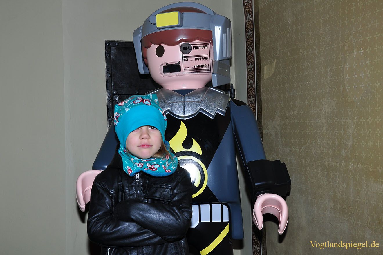 Kinder lassen sich gern mit den großen Playmobil-Figuren fotografieren.