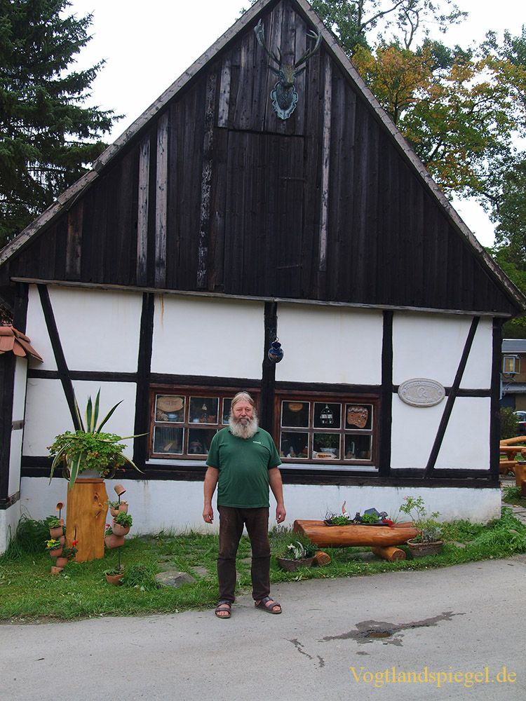 Ralf Naundorf vor seiner Töpferwerkstatt in Waldhaus bei Greiz.