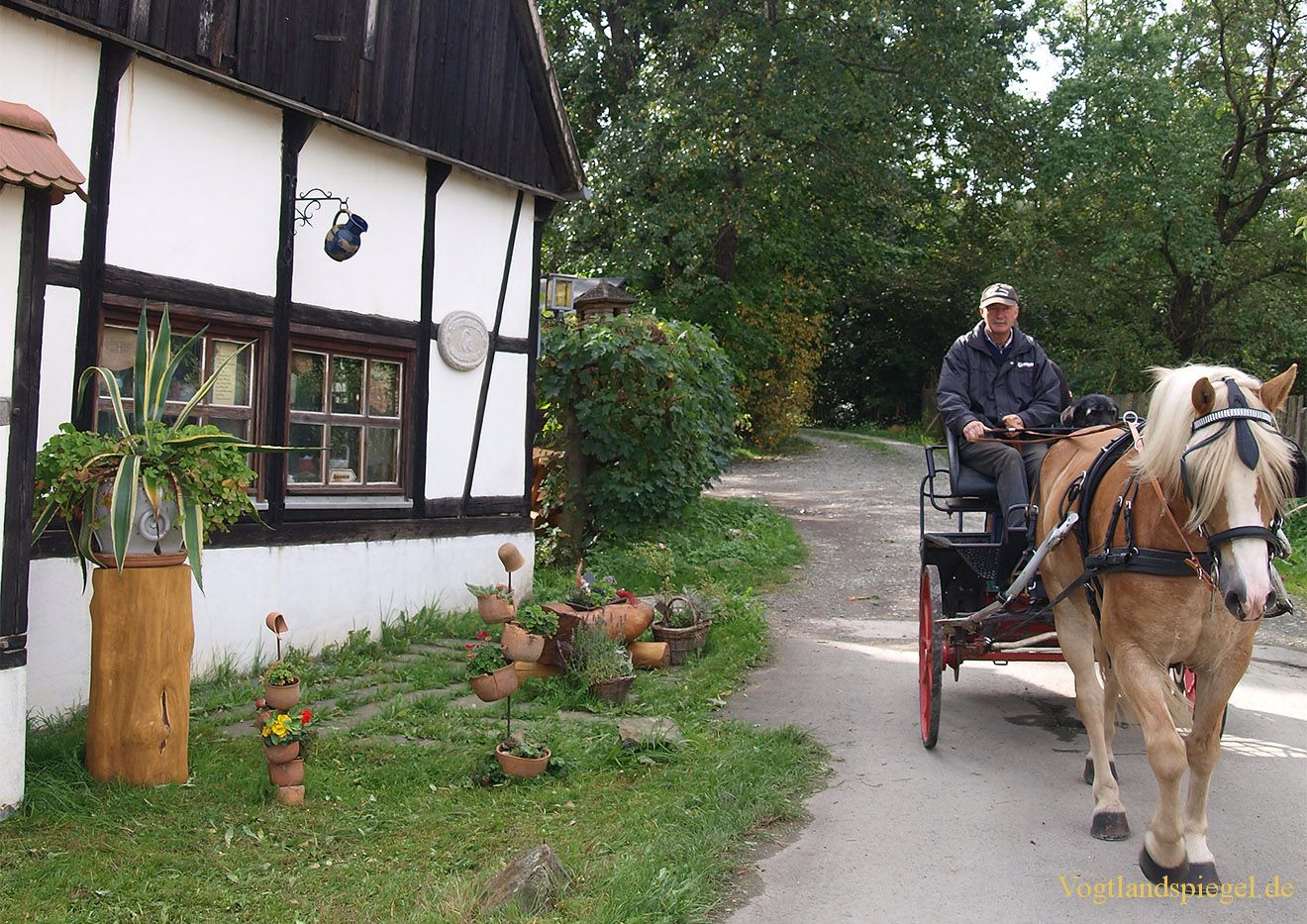 Hubert Jäschke kommt an der Töpferei Naundorf vorbei gefahren.