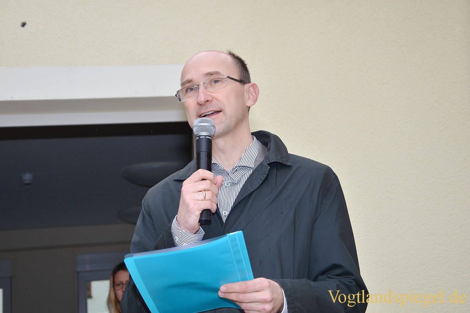 Pfarrer Ulrich Krause spricht den Segen über das neue Haus.
