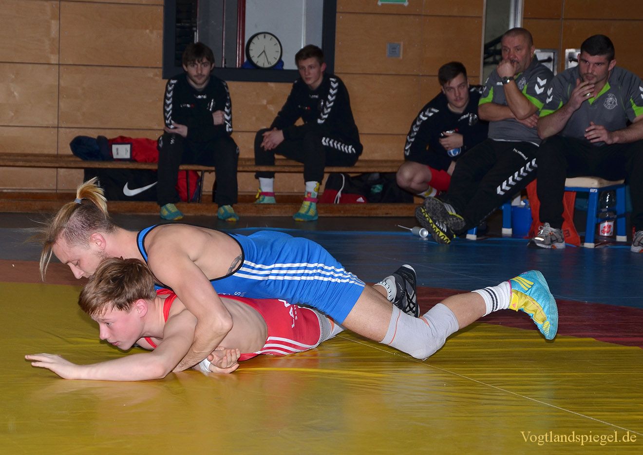 57kg Gr.-röm.: Maximilian Buch, KFC Leipzig gegen Sven Cammin (blaues Trikot), RSV Rotation Greiz 0:4-TÜ-0:16-01:09