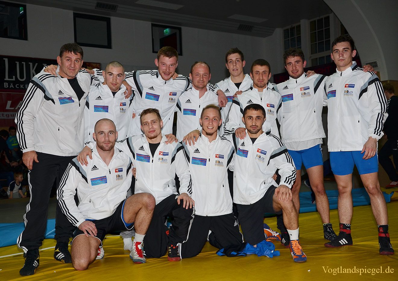 Mannschaft RSV Rotation Greiz in Leipzig: v.l. hinten; Trainer Tino Hempel, Lukasz Konera, Sebastian Wendel. Trainer Swen Lieberamm, Tom Linke, Vladimir Codreanu, Toni Stade, Daniel Sartakov. vorn v.l.: Thomas Leffler, Brian Tewes, Sven Cammin und Vladimir Gotisan
