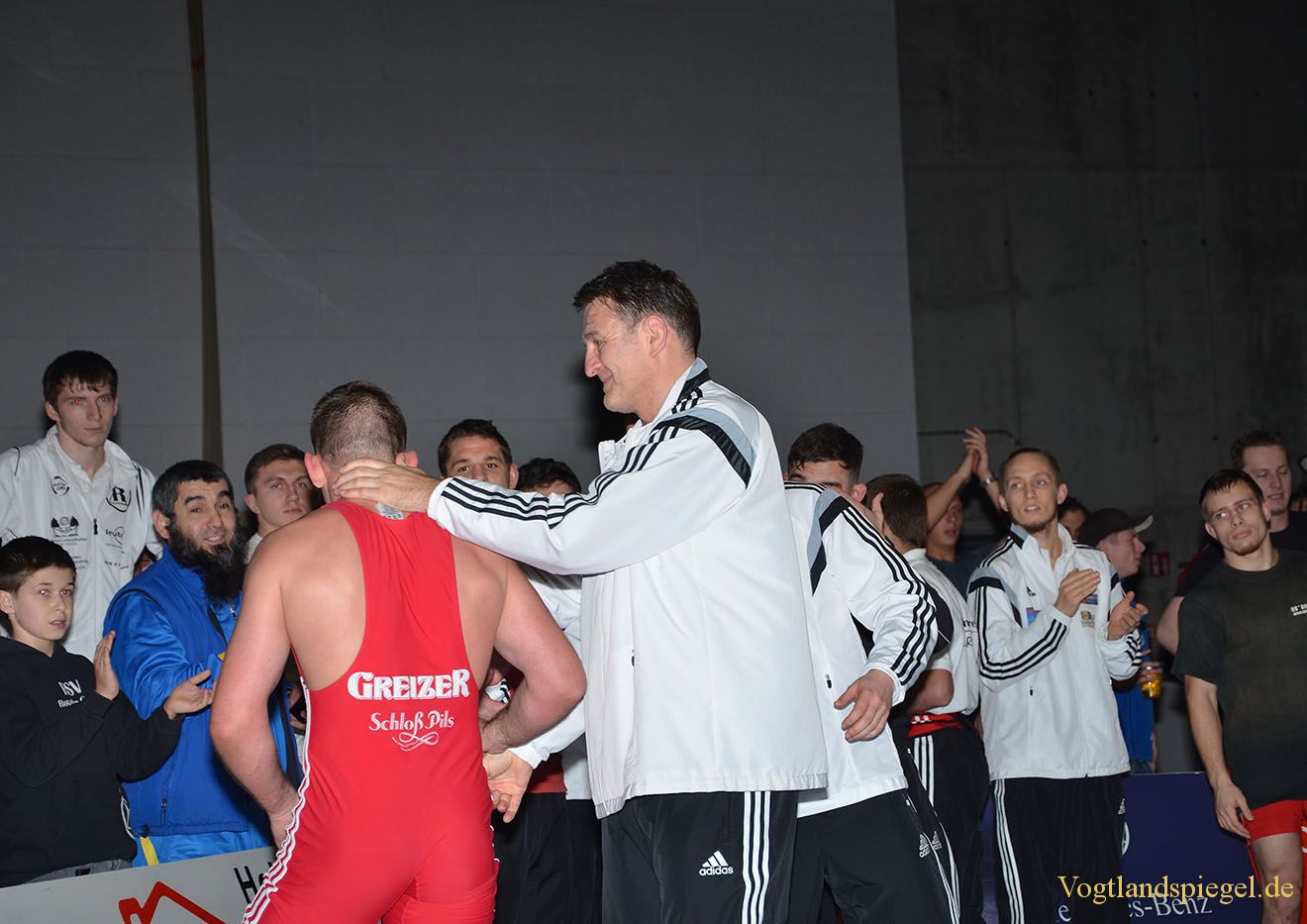 Adam Sobieraj nach seinem letzten Kampf für Greiz und Trainer Tino Hempel