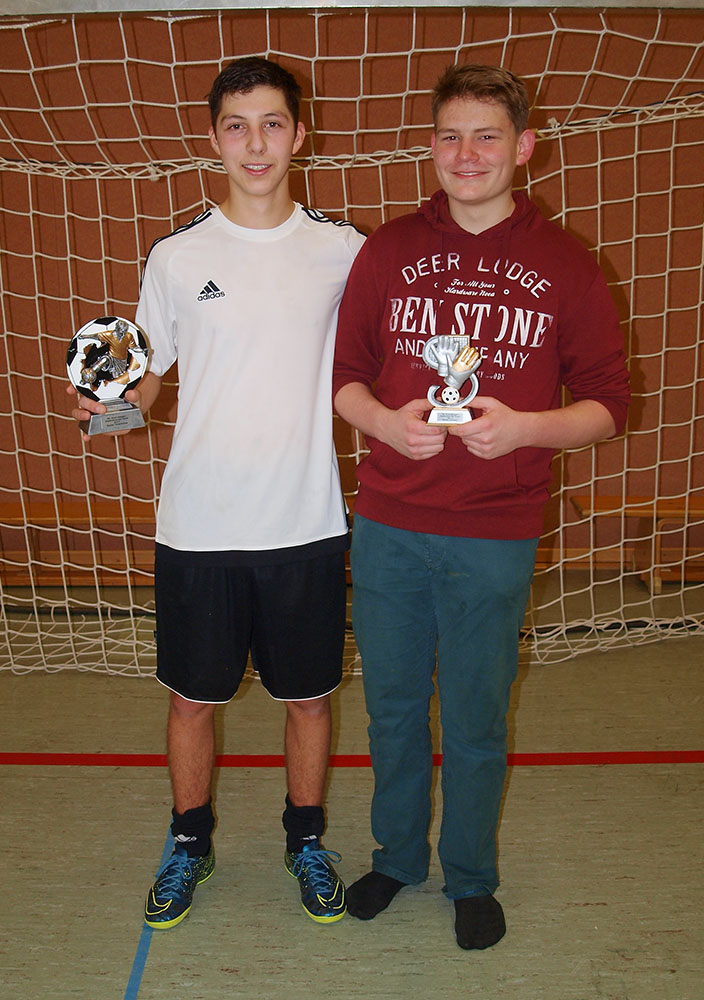 Der erfolgreichste Torschütze Markus Müller (l.) und der beste Torwart Nico Förster des B-Juniorenturniers.