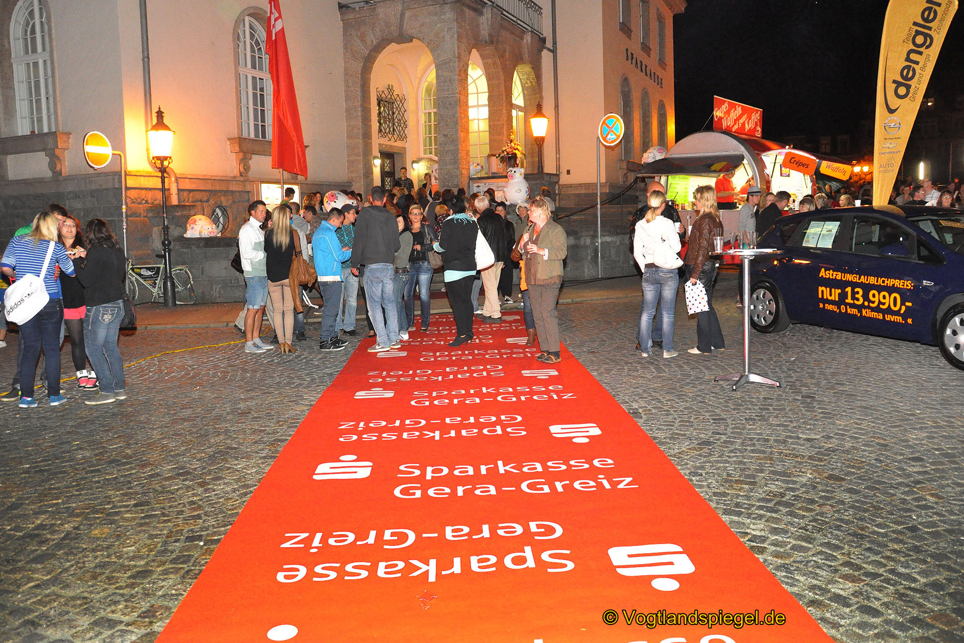 Der „rote Teppich“ der Modenschau an der Sparkasse Greiz