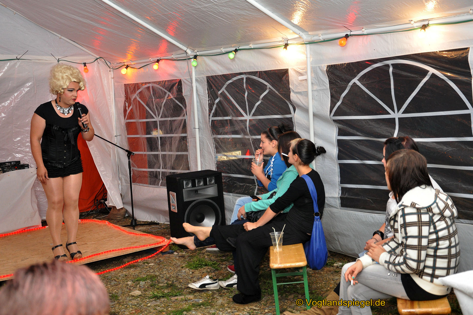 Amy Ballhaus mit seiner Travestie-Show im Piercingstudio „Black Orchidee“
