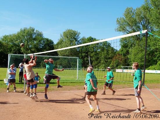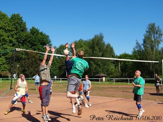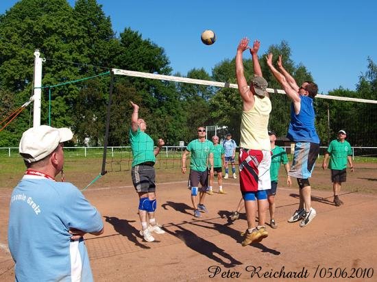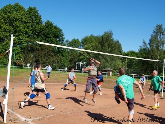 Der Skiclub des SV Chemie, die Elsterhaie aus Berga, die SG Fröbersgrün, die Spielgemeinschaft Jahnturnhalle, die 2. Männermannschaft des SV Chemie Greiz, die Bergaer Volleyballfreaks und die Altersturner des SV Chemie Greiz stellten sich den Anforderungen des Turniers. Nach gut vier Stunden Volleyball bei hochsommerlichen Temperaturen musste Pokalverteidiger SG Jahnturnhalle den Altersturnern des SV Chemie Greiz den Vortritt lassen. Die Besucher, die nicht beim Fußball oder Volleyball schwitzten, konnten sich vom Kuchenbuffet der Sportlerfrauen verführen lassen. Die Cheerleader der Greizer Lessingschule boten mit ihrem Auftritt auch etwas fürs Auge. Die Kinder vergnügten sich beim Wasserspritzen mit der Feuerwehr, den Aktivitäten des Spielmobils oder einer Runde auf der Ponykutsche. Zum Festausklang lockte die Begegnung der SG 1.FC/Chemie Greiz II gegen SV Blau-Weiß 90 Greiz noch einmal viele Besucher auf die Schaltis.