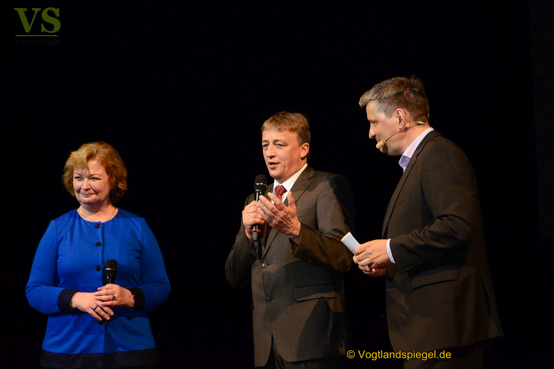 v.l. Martina Schweinsburg, Uwe Jahn und Moderator Christian Müller im Gespräch.