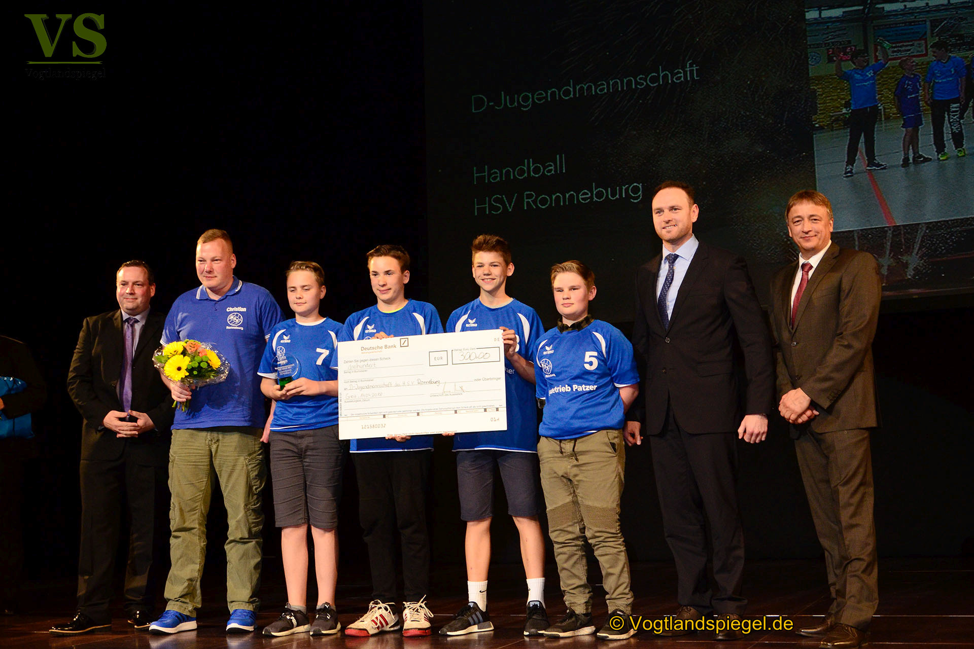 v.l. Jan Koschinsky, die D-Jugendmannschaft des H.S.V. Ronneburg, Christian Popp und Uwe Jahn.