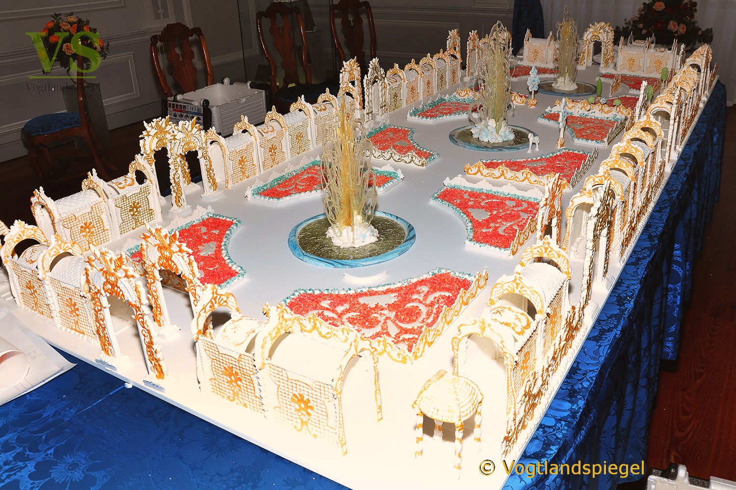 Albert Ziegler, Chefkonditormeister des bedeutendsten Kaffeehauses von München kreiert einen Tafelaufsatz für das Speisezimmer im Oberen Schloss Greiz. Ein filigranes Kunstwerk.