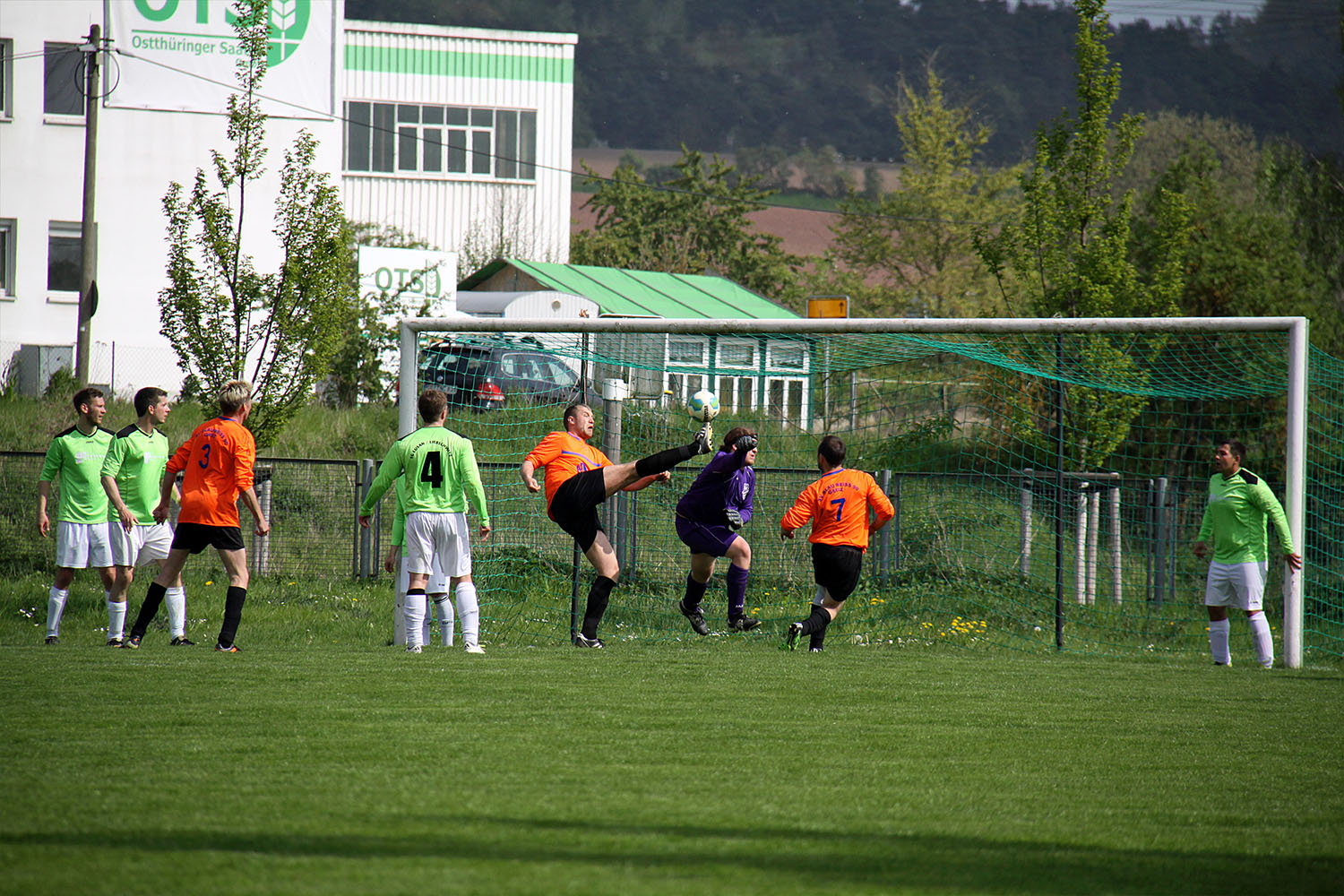 Nico Springer rutscht der Ball über den Schlappen vor dem Kasten der Lusaner und verpasst eine Großchance, nachdem der Torwart schon geschlagen war.