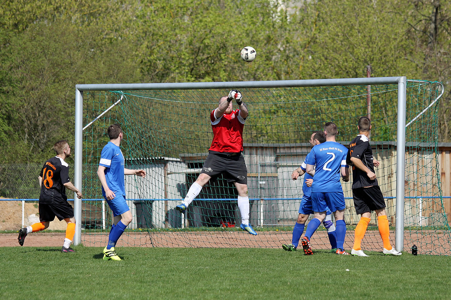 Rene Dressler vom SV Blau-Weiß 90 Greiz faustet den Ball aus dem 5 Meter Raum.
