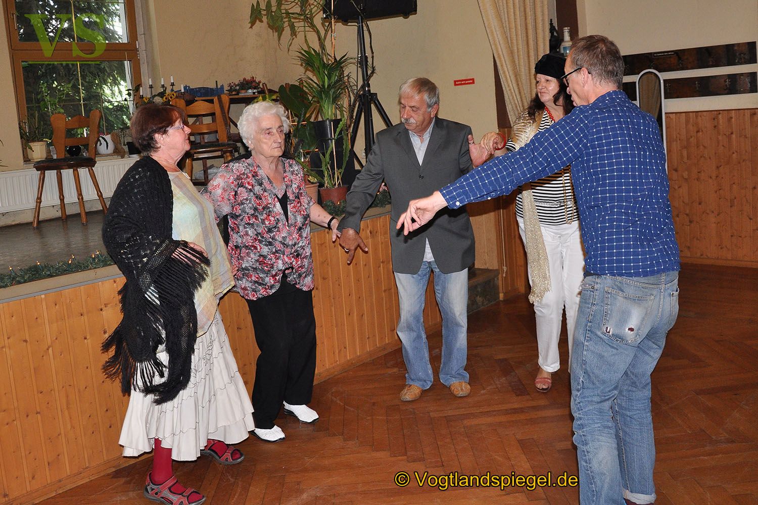 Im Saal der Gaststätte »Grüne Linde« probt derzeit die Seniorenwerkstatt unter Leitung von Martin Heesch, der Regieanweisungen gibt.