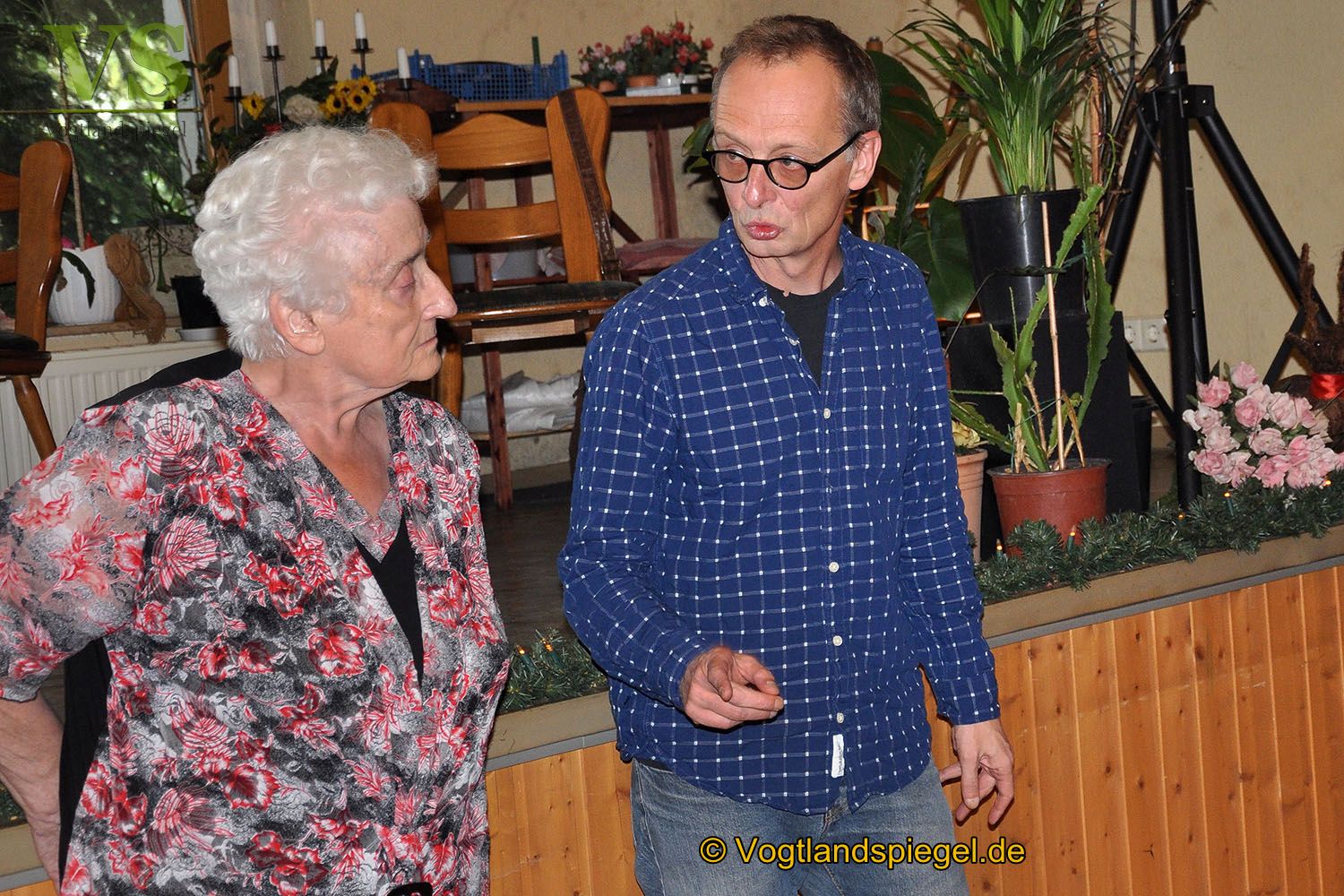 Im Saal der Gaststätte »Grüne Linde« probt derzeit die Seniorenwerkstatt unter Leitung von Martin Heesch, der Lilo Pfüller wertvolle Hinweise gibt.