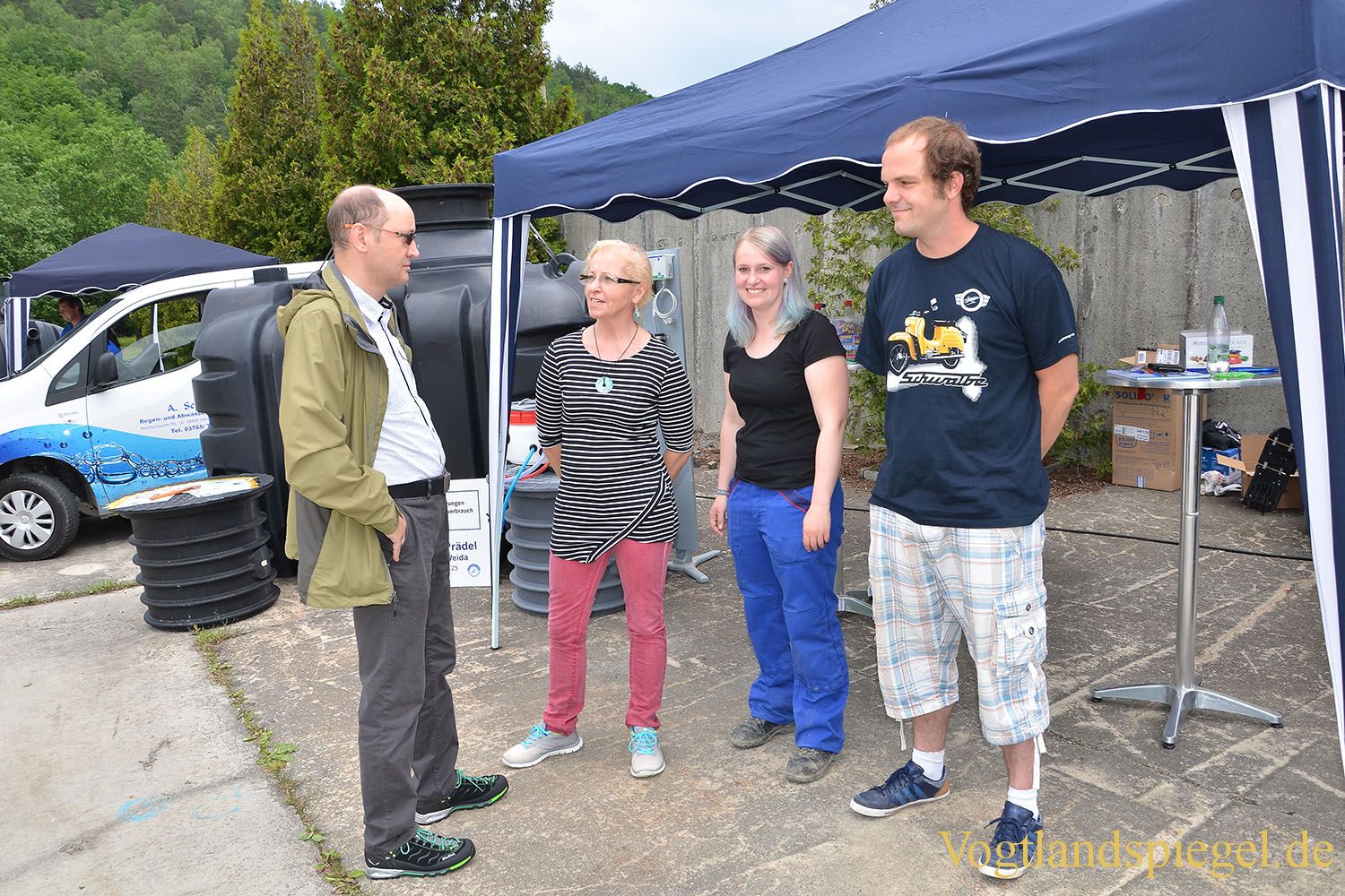 Gast Olaf Dietzel (l.) im Gespräch mit dem Team der IST-Abwassertechnik Weida.
