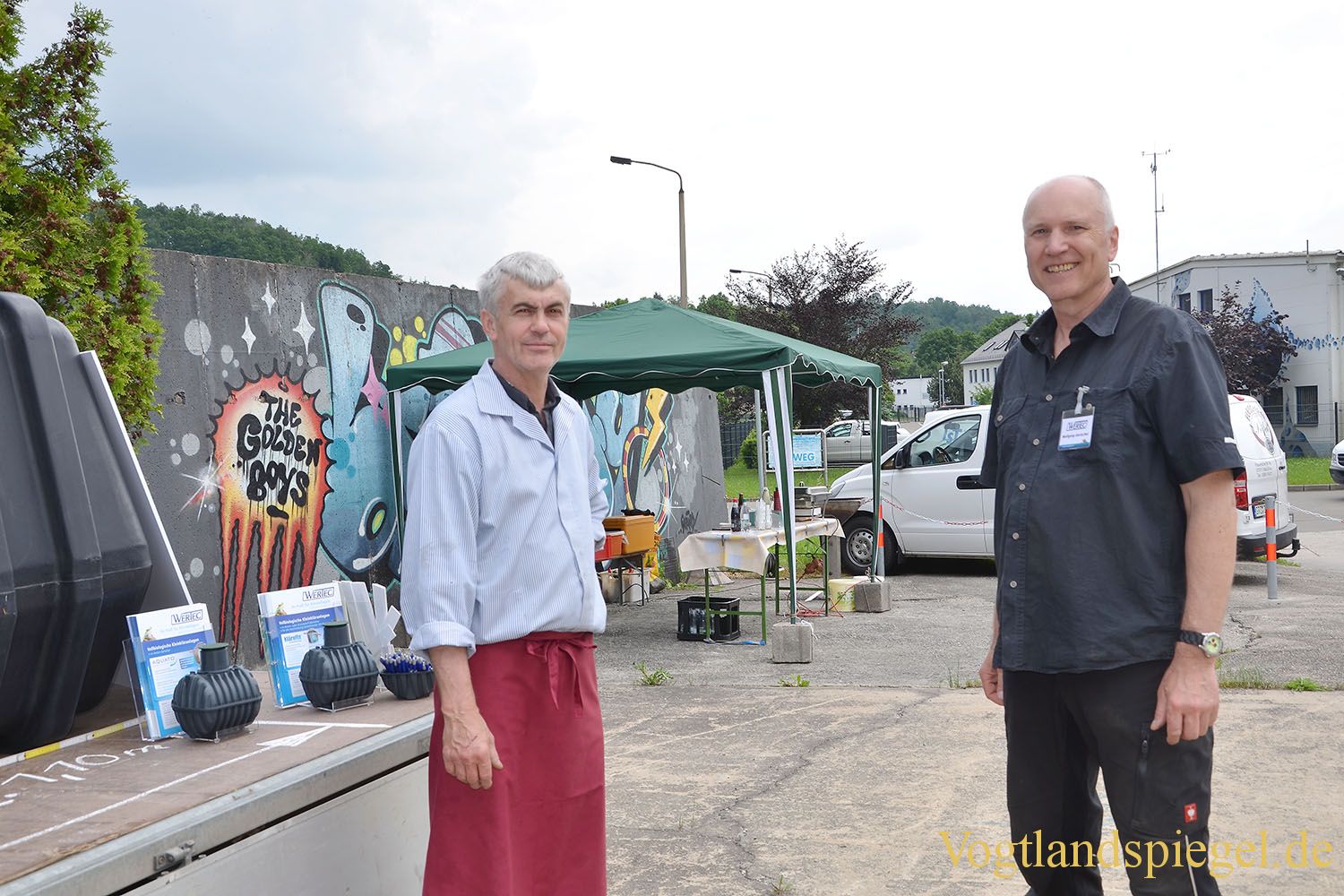 Wolfgang Gerischer (r.) von der Firma WERTEC im Gespräch mit Ludwig Hamann.