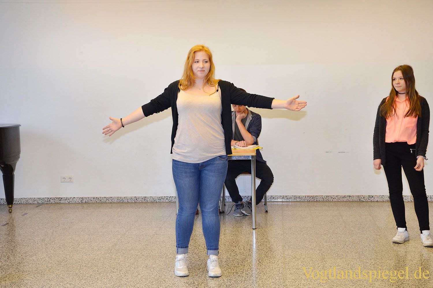 Probenszene aus dem Stück „Der süße Brei und andere Grausamkeiten“, das am 29. April seine Premiere erleben wird.