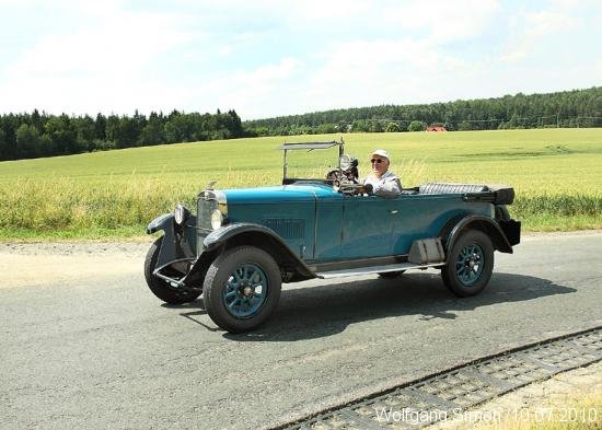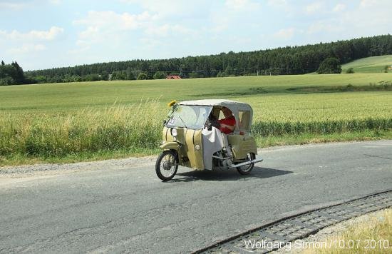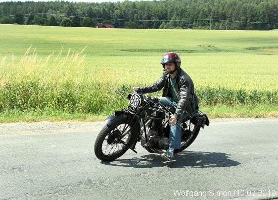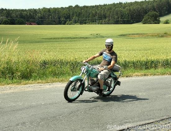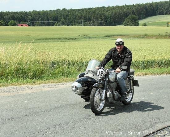 GREIZ-Obergrochlitz. Unter tropischen Temperaturen fand am vergangenen Samstag ein Treffen und ein Lauf zur Thüringer Oldtimermeisterschaft statt. Am Vormittag trafen sich weit über 100 Oldtimer auf dem Obergrochlitzer Flugplatz. Nach der Eröffnung ging es dann auf eine ca. 70 km lange Strecke für etwa 70 Motorräder einschl. Beiwagengespanne und Mopeds, deren ältesten vor über 80 Jahren die Fabriken verließen. Unter ihnen fast vergessene Fabrikate wie Wanderer, Ardie, Schütoff, DKW usw. Bei den 50 Autos hatten die Cabrios bei diesem Sommerwetter etwas angenehmere Temperaturen bei der landschaftlichen sehr schönen Strecke. Es ging durch das Göltzschtal, durchs Elstertal sowie mehrere Orte des Vogtländischen Oberlandes durch Wellsdorf, Tremnitz zurück zum Flugplatz. Die Rundfahrt fand eine gute Resonanz in den Durchfahrtsorten, wo überall den Teilnehmern von den Zuschauern zugewunken wurde.Unterwegs waren Prüfungen wie Spurbrett und Halten im gleichen Seitenabstand.