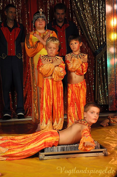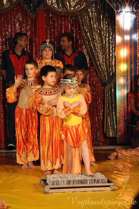 GREIZ. Die alteingesessene Zirkusfamilie Hein hatte vier Tage lang zum Zirkus-Projekt eingeladen und mit insgesamt acht Trainern, staatlich geprüften Artisten, den Schülern professionell die schillernde Welt der Manege nahe gebracht. Jedes Kind erlernte Kunststücke und brillierte als geheimnisvoller Zauberer, sportlicher Akrobat, putziger Clown, graziler Seiltänzer, eleganter Tauben-oder Ziegendresseur, mutiger Schlangenbeschwörer oder Fakir. In wunderschönen, farbenfrohen und liebevoll gestalteten Kostümen entfachten die Schüler ein wahres Feuerwerk an Können und Lebensfreude. Mit diesen Projekten setzen wir uns das Ziel, den Kindern Verantwortung zu übertragen, Vertrauen und Wertschätzung zu erlernen, wie es Mitarbeiter Ralf Polzin formulierte. Das Konzept ging auf: Selbstbewusst und sicher präsentierten die kleinen und größeren Star ihre Kunststücke und wurden mit lautstarkem Applaus vom begeisterten Publikum belohnt.